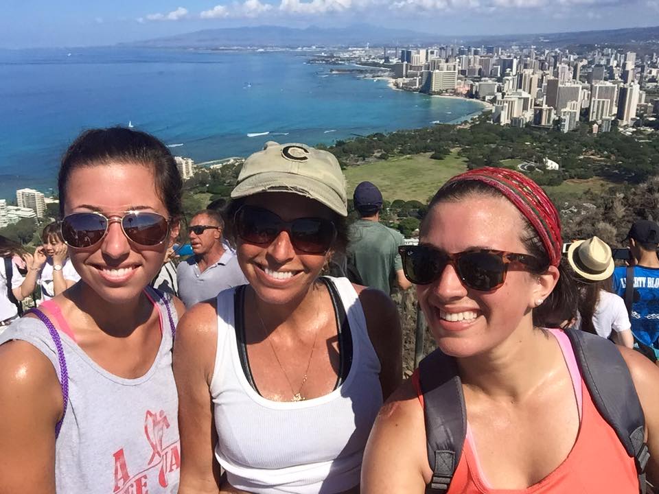 The hotel had free bikes available to its guests, so we decided to be super women and BIKE to Diamond Head, and then HIKE to the very top! We're all smiles here, but it's just 7am, and still a comfortable temperature outside :) |