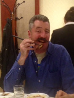 | It was the beginning of Carlos' four day fortieth birthday bash, and about twenty of us gathered 'round the large circular tables to enjoy the feast. Carlos is toasting with his chopsticks. |